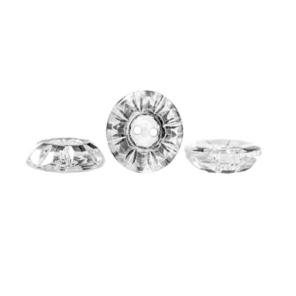 Botão Acrílico com detalhe prateado, modelo sofisticado e delicado, usado para confecção de roupas femininas.