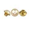 Descrição: Botão dourado com pé e detalhe preto em cima, usado para confecção de roupas finas.