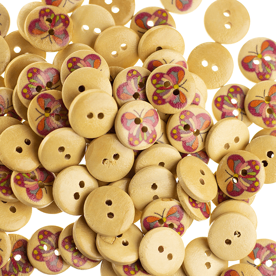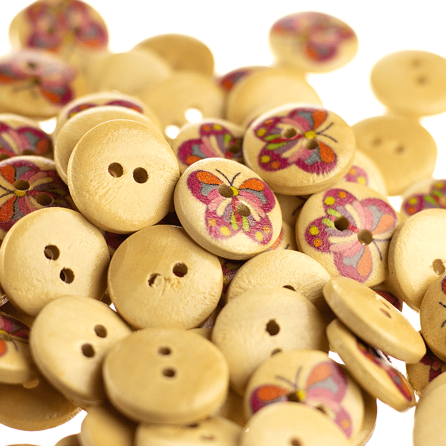 Botão Madeira Estampado Mod. 03 Borboletas
