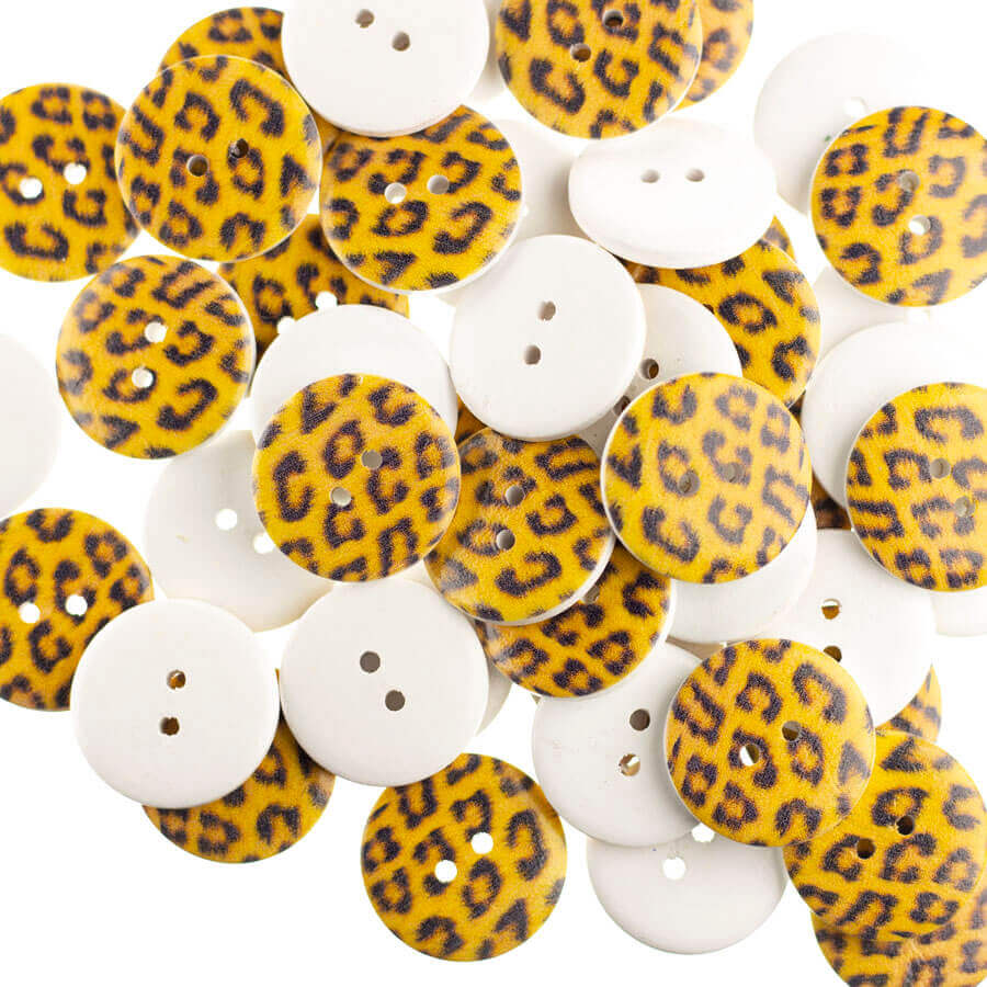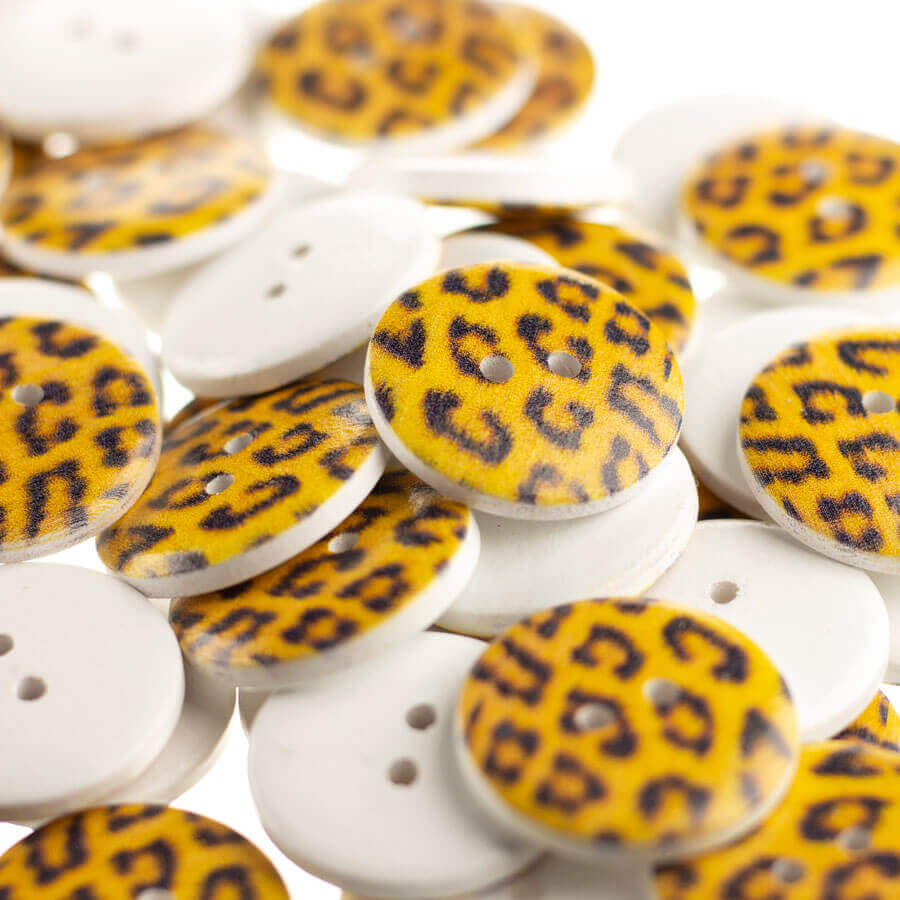 Botão de Madeira com estampa Onça dois furos, utilize para cortina, artesanato, crochê e trabalhos em Patchwork.