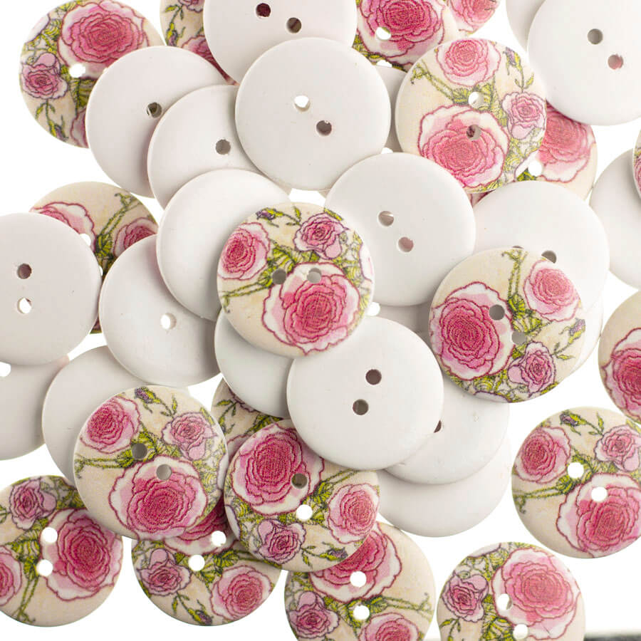 Botão Madeira Estampado Mod. 25 Floral
