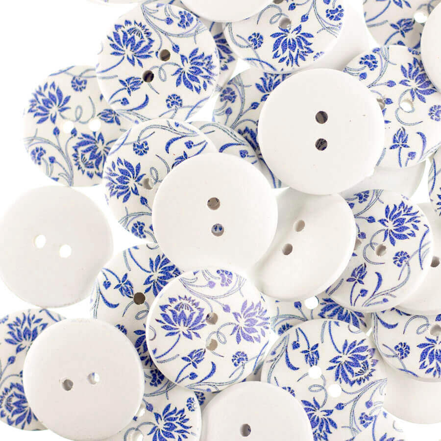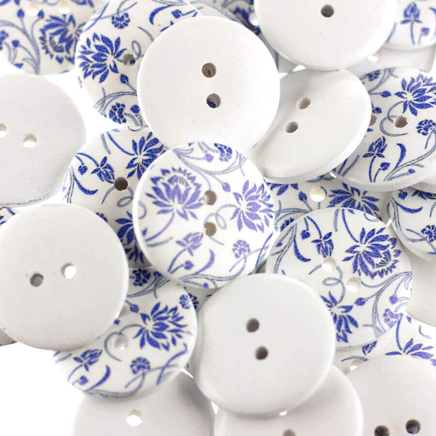 Botão Madeira Estampado Mod. 31 Floral Azul