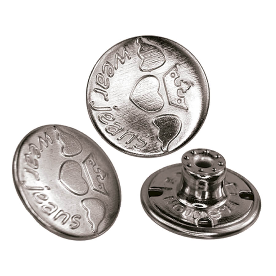 Botão Flexível geralmente usado na confecção de Calças, Jaquetas e tecidos como o jeans.