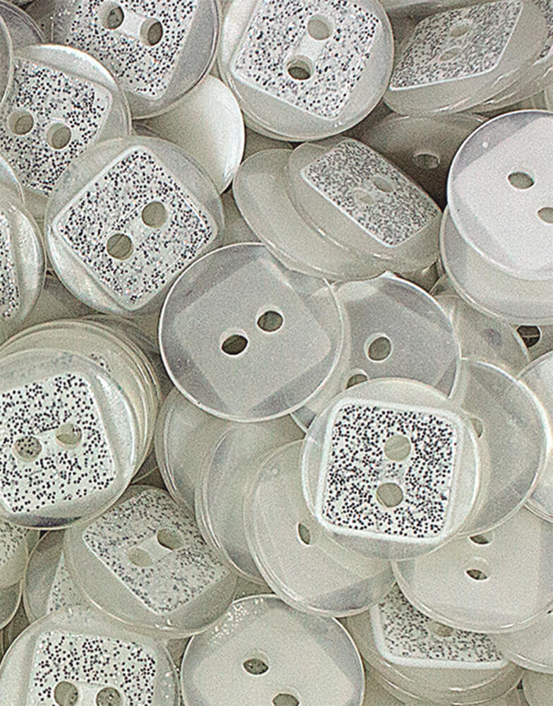 Descrição: Botão trasparente com detalhe quadrado em gliter no centro.
