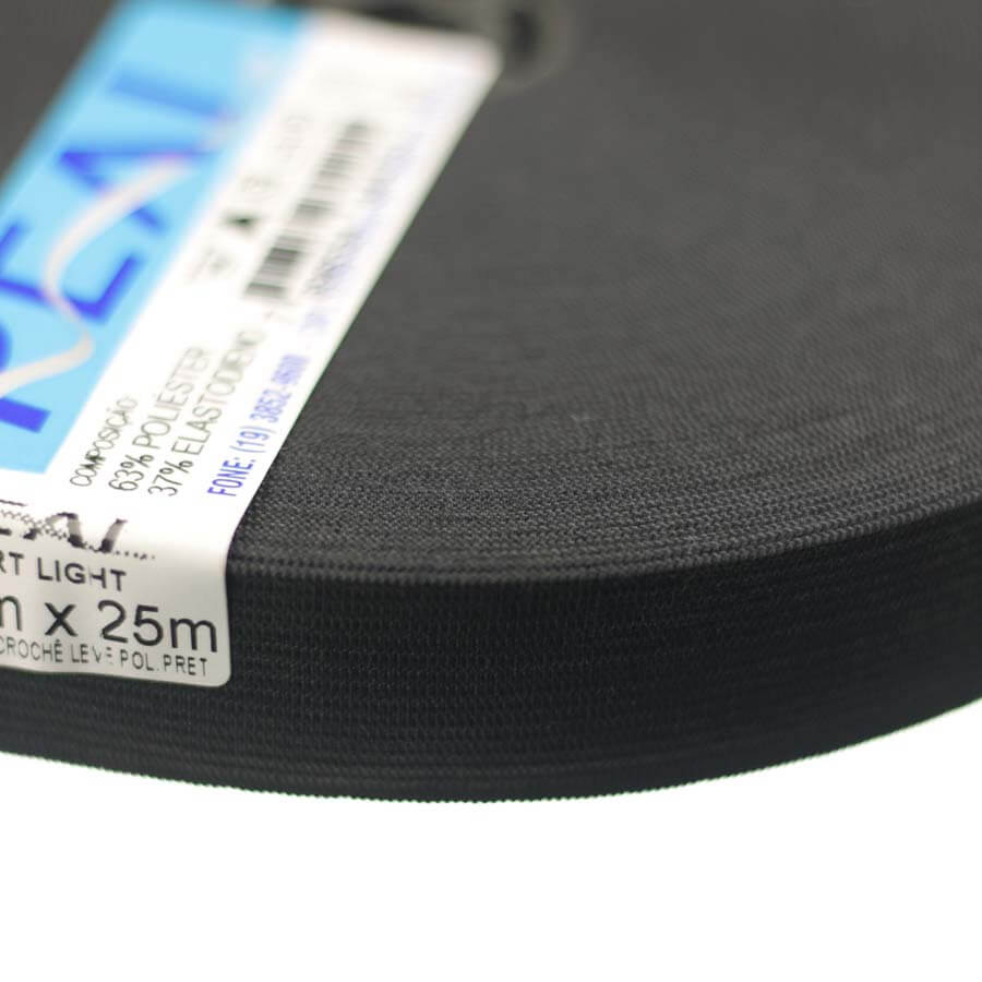 Elástico Crochet Short Light Preto 25mm