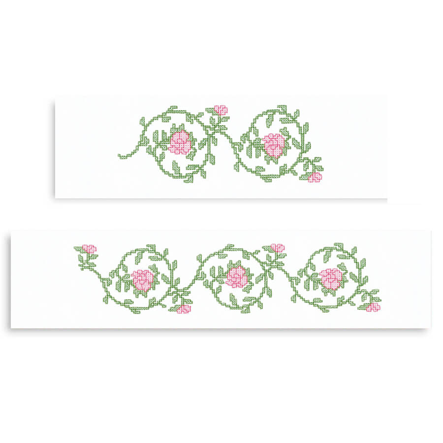 Faixa de tecido algodão bordada com ponto cruz usada para aplicação em toalhas, cama, mesa e banho em geral.