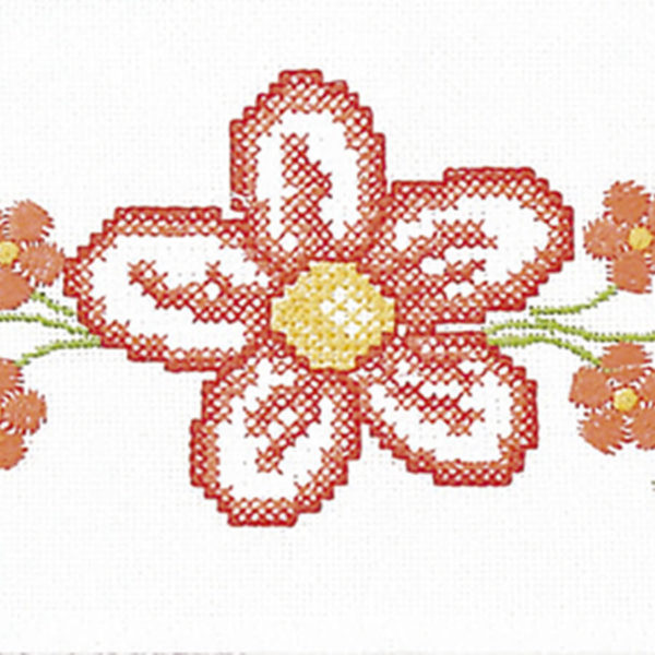 Faixa de tecido algodão bordada com ponto cruz usada para aplicação em pano de copa, toalhas, cama, mesa e banho em geral.