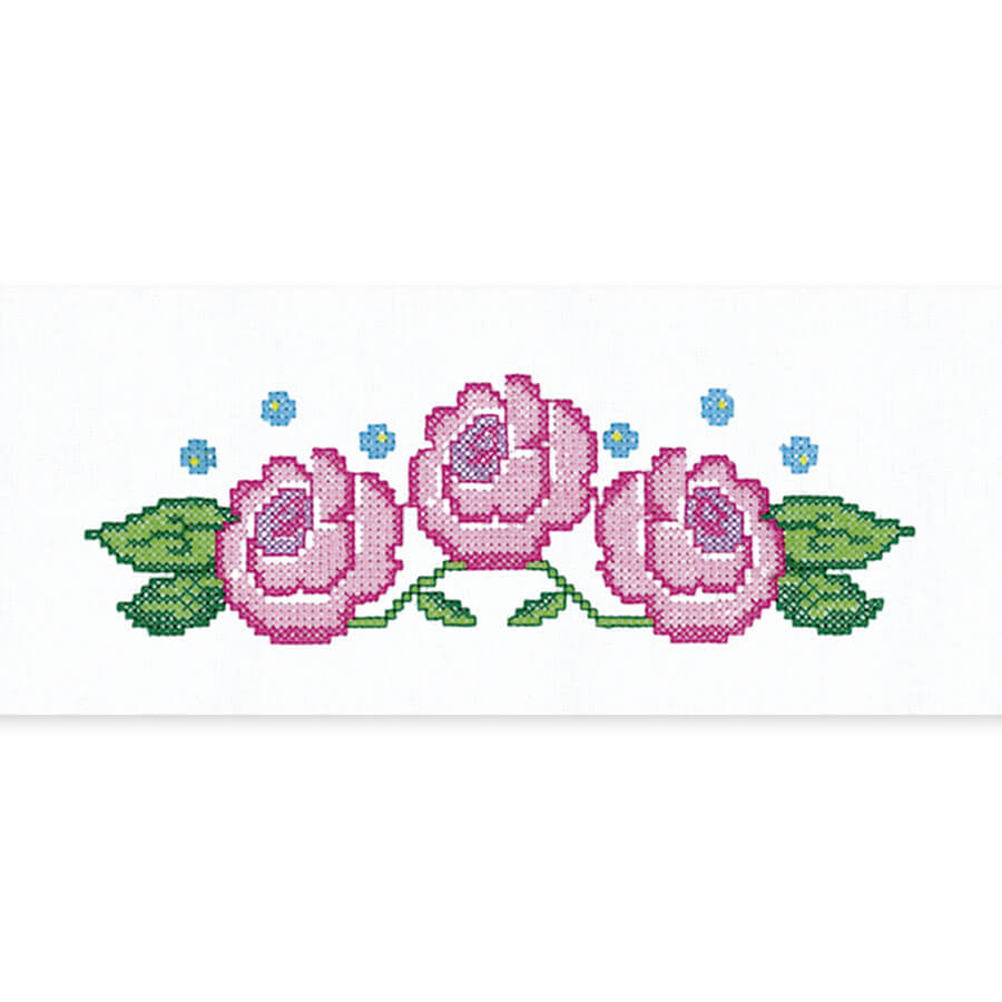 Faixa de tecido algodão bordada com ponto cruz usada para aplicação em pano de copa, toalhas, cama, mesa e banho em geral.