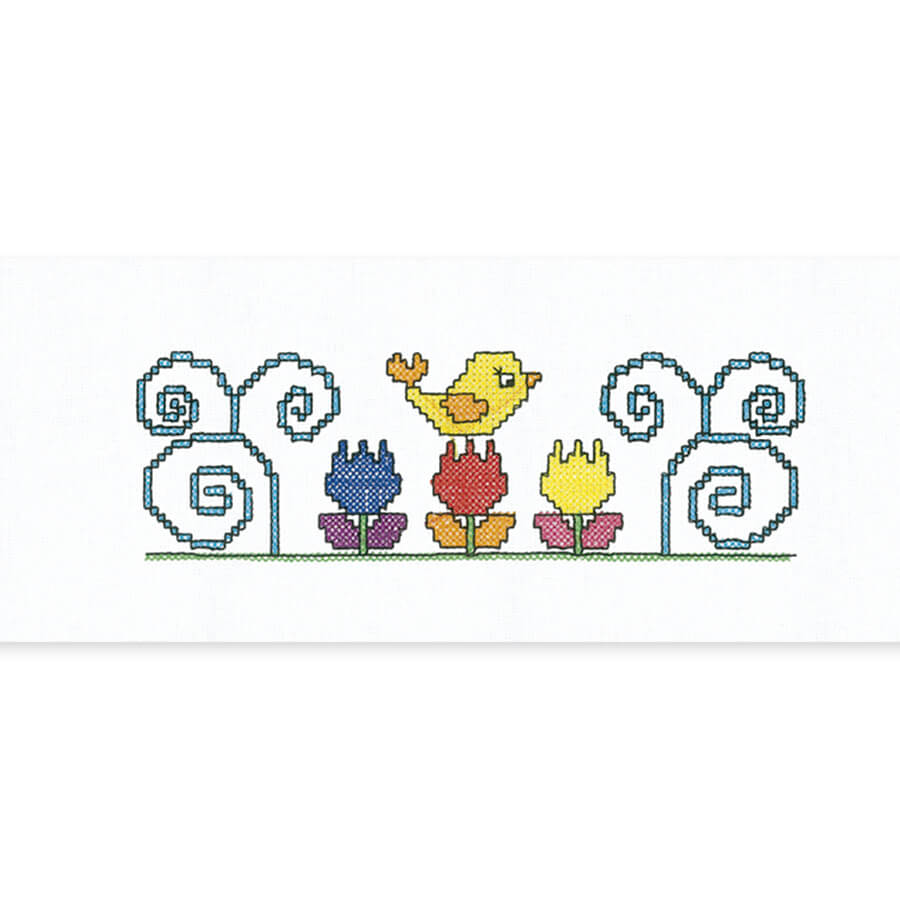 Faixa de tecido algodão bordada com ponto cruz usada para aplicação em pano de copa, toalhas, cama, mesa e banho em geral..
