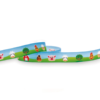 Descrição: Fita em Cetim verde com estampa da linha bosque mágico com dinossauro.