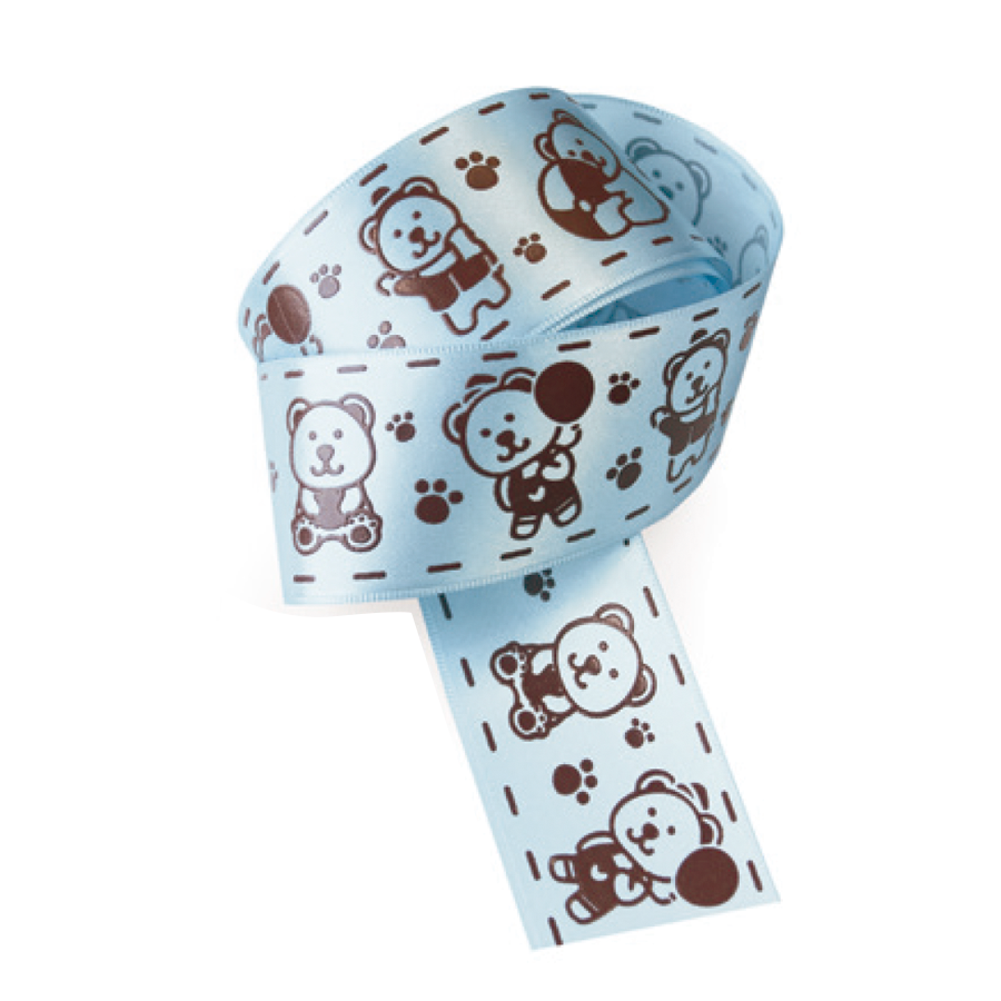 Descrição: Fita em Cetim azul com estampa ursinhos marrom.