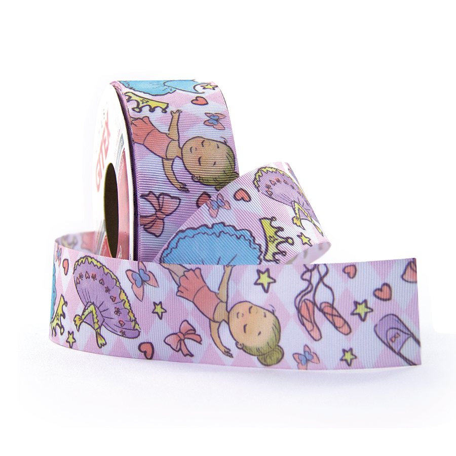Descrição: Fita em Gorgurão cor 668 com estampa bailarina colorido, disponivel em diversos tamanhos.
