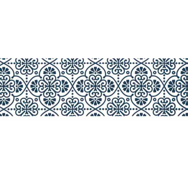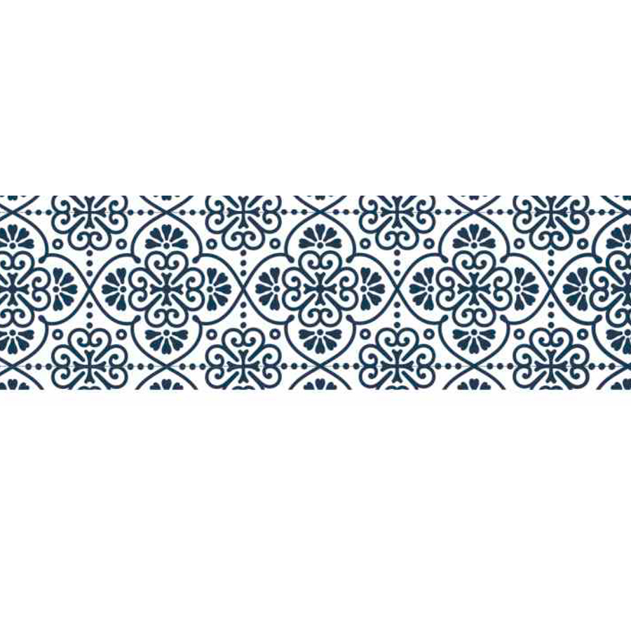 Descrição:Fita Gorgurão branco com estampa arabesco azul.