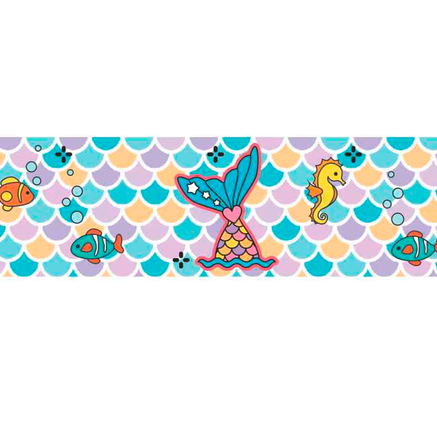 Descrição:Fita Gorgurão colorido com estampa de escamas e sereias.