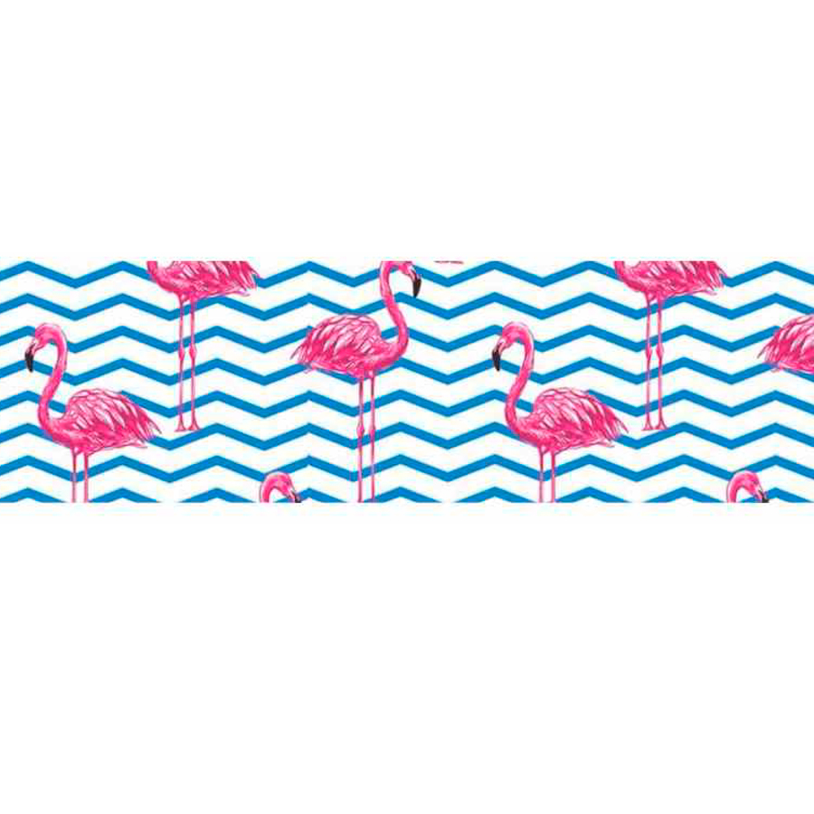 Descrição:Fita Gorgurão azul com estampa de flamingo rosa.