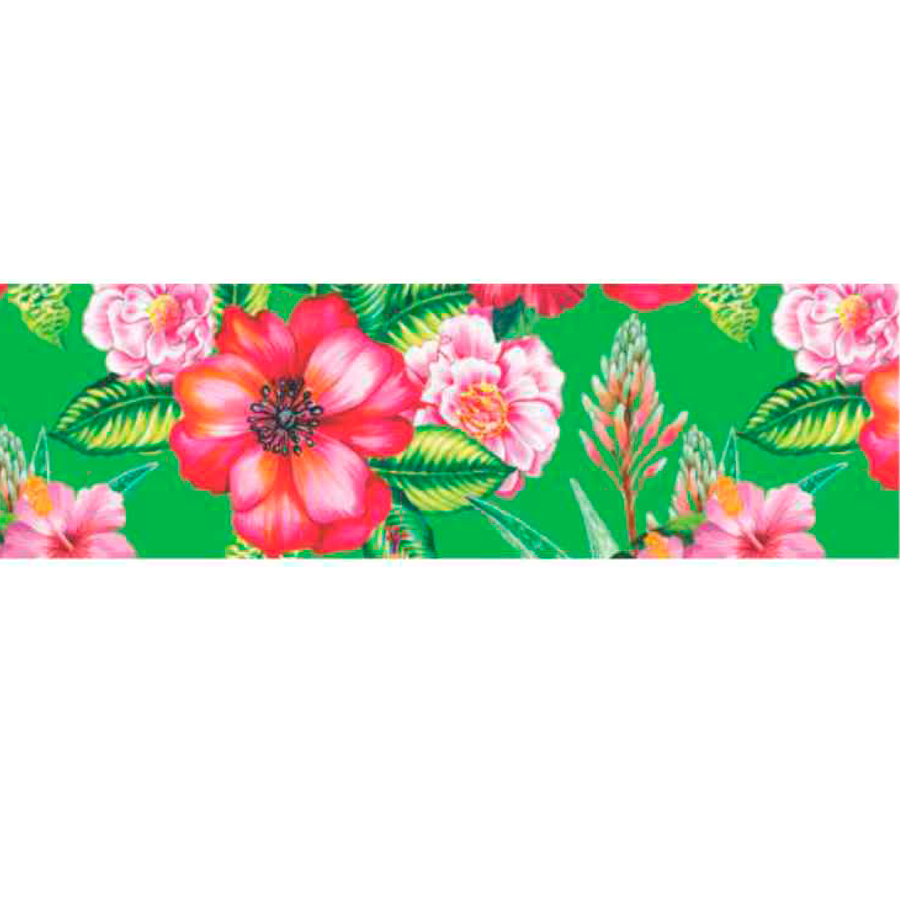 Descrição:Fita Gorgurão verde com estampa de floral colorida.