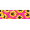 Descrição:Fita Gorgurão vermelho com estampa de girassol amarelo.