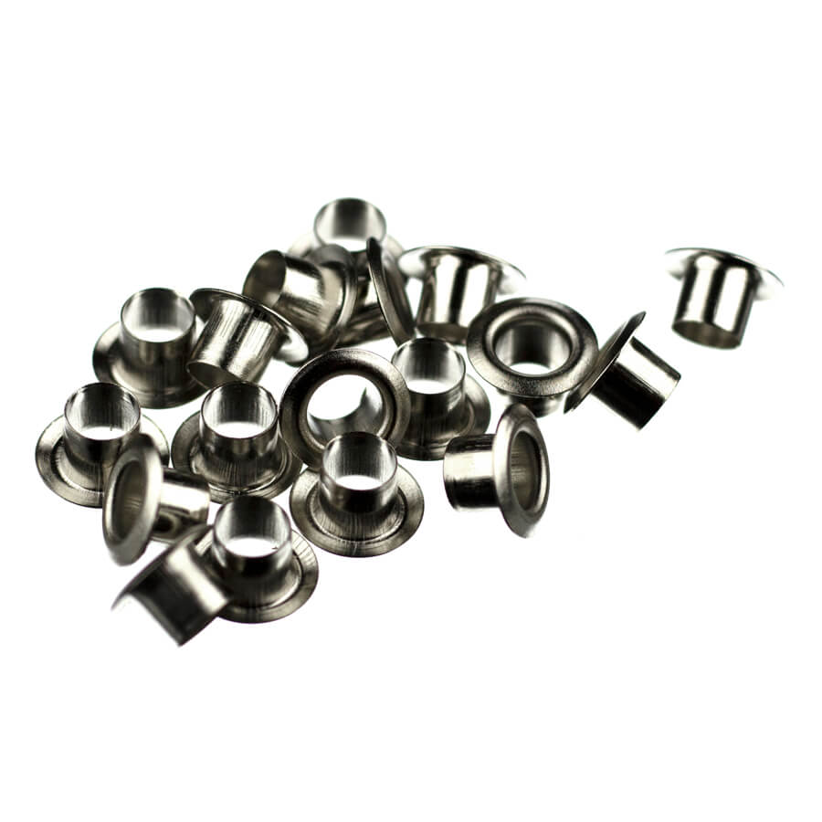 Uso: Ilhós comum de ferro, sem arruela. Os ilhoses são utilizados para passar cordões, cadarços, fitas, em funções decorativas e como elementos de fixação.
