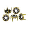 Rebite com garra, pode ser aplicado manualmente sem matriz, geralmente usado para customização de roupas, acabamentos em tiaras, laços, sapatos, bolsas e artesanato em geral.