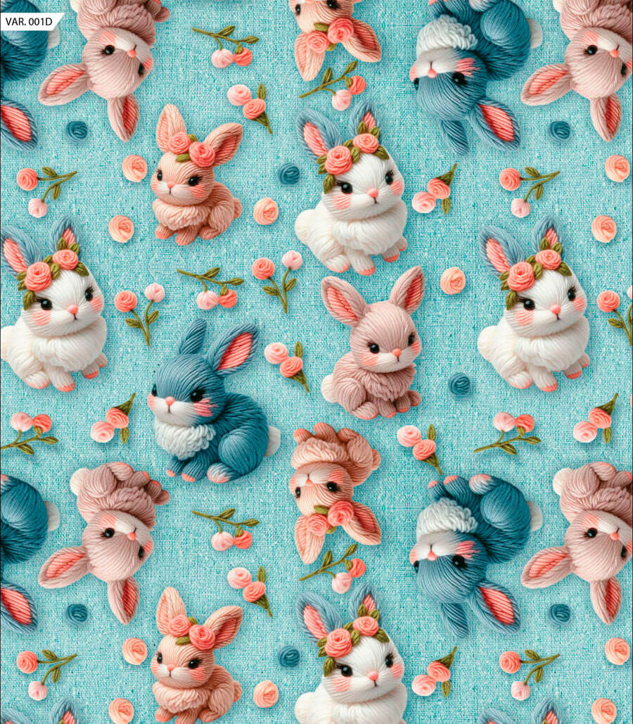 TECIDO TRICOLINE COELHOS DE FOFINHOS