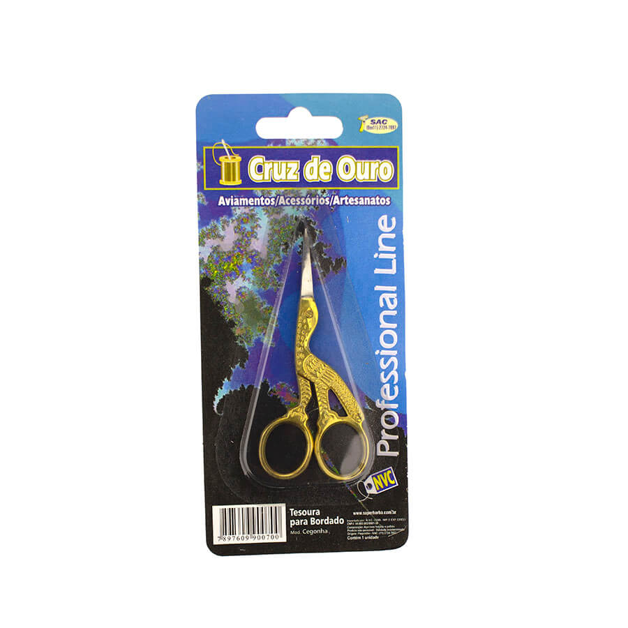 Tesoura Pássaro para Bordar Cruz de Ouro 9cm
